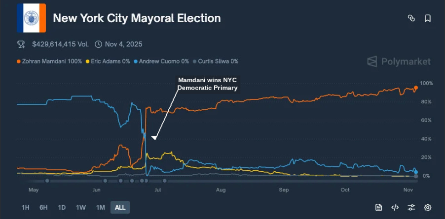 While Polymarket has started to do this for select markets, it is unclear and not intuitive for most users. Price changes should be contextualized with specific news events.