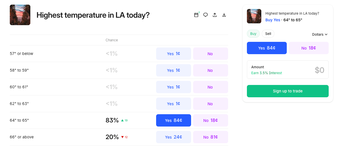 The market pages themselves are completely standardized. A market showing a sports game shows the same YES/NO feed as the market for the number of Elon tweets and AGI timelines.
